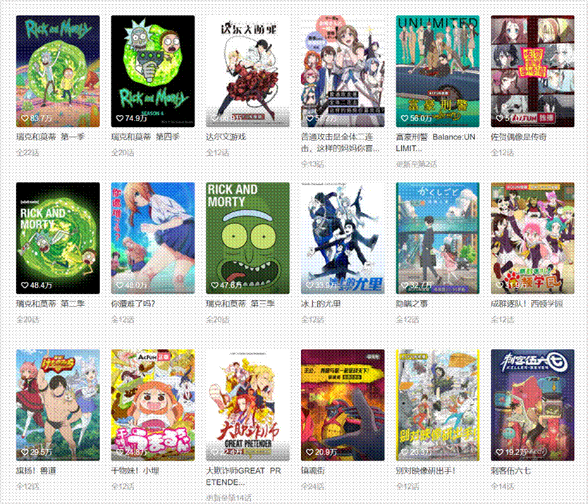 自從被快手收購以來,A站的版權內容始終保持精品化的策略,憑借精準的選番眼光拿下了一部又一部霸權番:購入超人氣動畫《佐賀偶像是傳奇》,讓外界看到了A站的復蘇之路;引進《你遭難了嗎?》《普通攻擊是全體二連擊,這樣的媽媽你喜歡嗎?》《旗揚!獸道》等特色番劇,播放量均在5000萬以上;后續的《達爾文游戲》播放量超過1.1億,美國神級動畫《瑞克和莫蒂》系列總播放量更是高達9億。