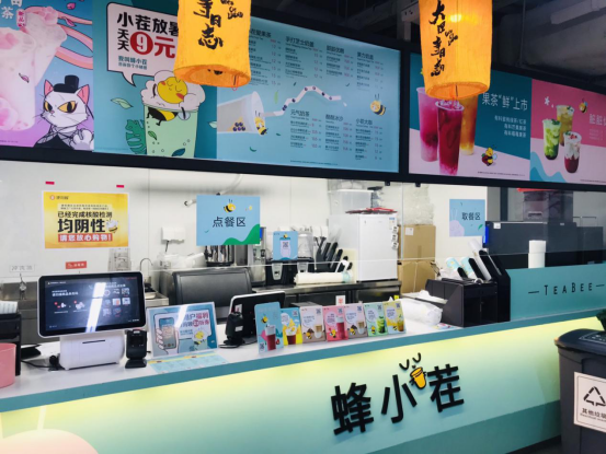 繼續深入店內,用餐區也同樣被打造為動畫相關,一個寫有大理寺三字的大門標志著用餐區的到來。而在主題壁紙外,寫有《大理寺日志》的燈籠隨處可見。在這里,速途網還發現了便利蜂于不久前低調推出的奶茶品牌蜂小茬,以及一款聯名款奶茶嗚嗷喵喵治愈奶茶。