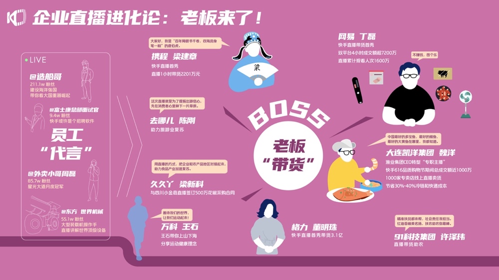產(chǎn)業(yè)轉(zhuǎn)型升級往往自下而上,企業(yè)員工在快手摸索出一條可行路徑,老板們也紛紛來到快手。董明珠快手直播首秀3小時總成交額破3.1億,快手特別準備多重預案,直播3小時全程流暢無卡頓;網(wǎng)易CEO丁磊快手直播帶貨首秀成交額也超過了7200萬。值得注意的是,董明珠和丁磊的直播分別都搭配了專業(yè)主持人和快手帶貨達人,“企業(yè)家+主持人+快手達人”已成為直播帶貨的新標配——企業(yè)家懂產(chǎn)品、吸人氣,主持人有天然的控場能力,帶貨經(jīng)驗豐富的快手達人則為直播帶來可觀的流量。