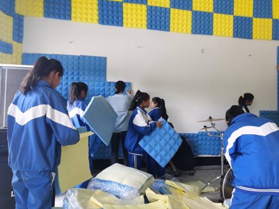 為了給學生提供更好的樂隊排練環境,痛仰樂隊帶著快手公益資助的隔音設備,和老師一起改造學生排練室。他們幫助學生調試修理樂器,還送上了準備好的小禮物。