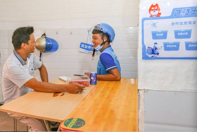 夏天對于外賣騎手來說一直比較難挨。為給予頂著烈日送單的藍騎士更好的保障,餓了么自2018年起,就號召商家在條件允許的情況下,為藍騎士開辟一個專屬區域,使騎手們得以更有序、舒適地取餐及休息。今年藍騎士驛站迎來全面升級,除新增6000多個站點外,藍騎士驛站也會盡可能為騎手提供除休息外的服務,比如手機充電、免費水果、福利餐等。還有商家自發圍繞驛站開展活動,吸引更多藍騎士來店內等候訂單,比如第一屆“藍騎士杯”電競比賽就已在籌備中。