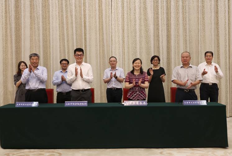 ▲8月6日,天津市商務局、市工信局、市農業農村委領導與拼多多代表簽署了戰略合作協議。(攝影 安舜)