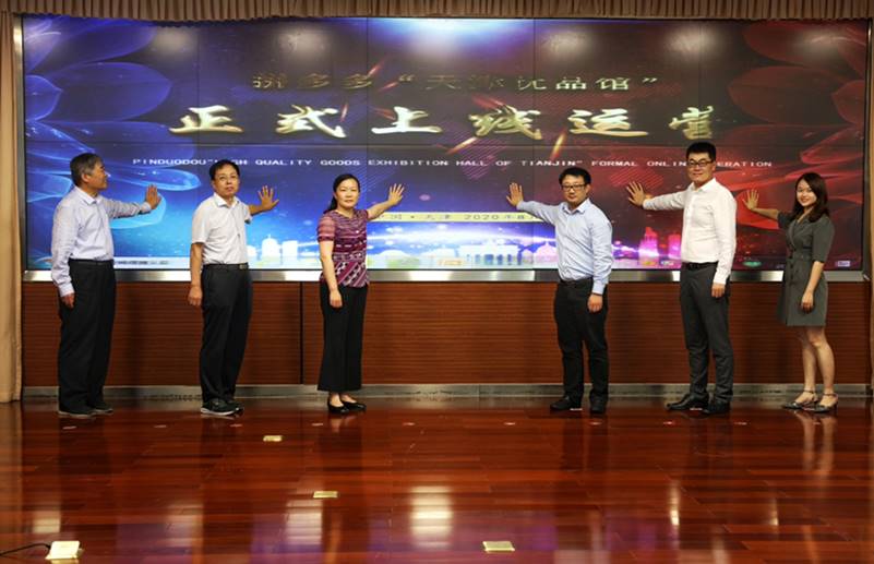▲天津市商務局、市工信局、市農業農村委領導與拼多多代表聯合宣布“天津優品館”正式上線運營。(攝影安舜)