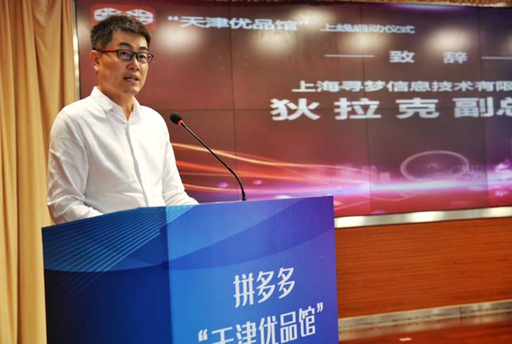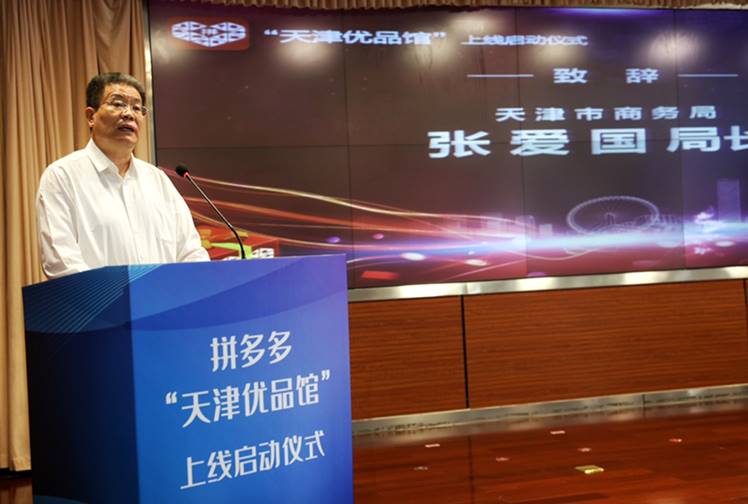 ▲天津市商務局局長張愛國表示,“天津優品館”旨在借助拼多多技術、流量和數據資源支持,助力天津打通線上消費品供應鏈。(攝影安舜)