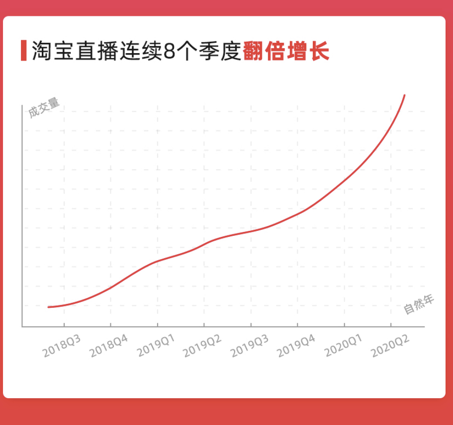 8月20日,阿里巴巴發布新一季財報,淘寶直播引導的成交已經連續8個季度同比增超過100%,成為近年來增長最快的新經濟業態。