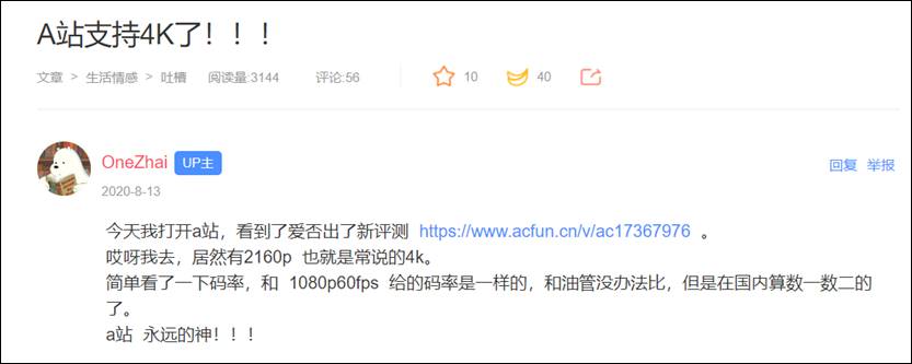 是的,近期不斷有A站粉絲發(fā)現(xiàn), “Zarz蛋蛋解說(shuō)”“愛否FView”等多位UP主的視頻列表中,出現(xiàn)了4K的內(nèi)容,而距離上次官方低調(diào)通知升級(jí)1080P 60幀的通知,也僅僅過(guò)去才2個(gè)月的時(shí)間。短短幾十天,A站的視頻碼率技術(shù)竟然又實(shí)現(xiàn)了一次質(zhì)的飛躍,觀看體驗(yàn)和畫面效果還在持續(xù)提升,也難怪粉絲們感嘆:“我們的A站真有牌面!”