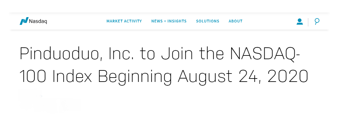 北京時間8月25日,納斯達克交易所正式將拼多多納入“納斯達克100指數(shù)”成分股,后者成為目前最年輕的成分股企業(yè),同時也是納斯達克歷史上,從創(chuàng)立到入榜時間用時最短的企業(yè)。