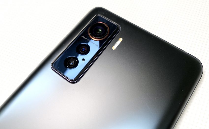 背面攝像頭呈直線排布,被收納與一個圓角矩形的矩陣之中,其中頂部最大的為主攝像頭,從尺寸上便可以感受到這一次iQOO 5在影像方面的提升。