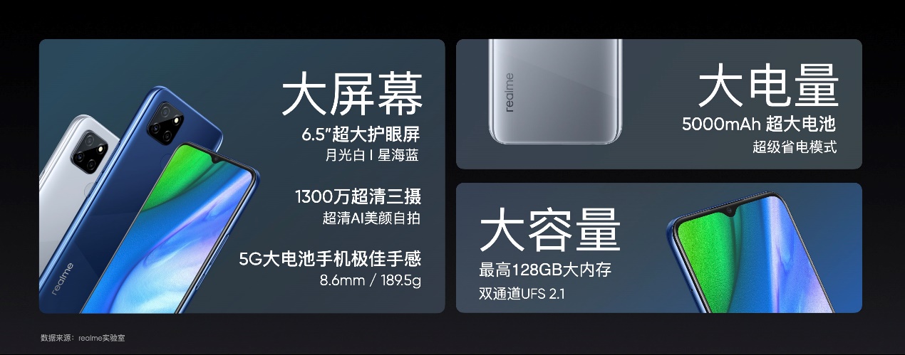 本次發(fā)布會,realme還發(fā)布了全球首款真千元5G手機——真我V3。