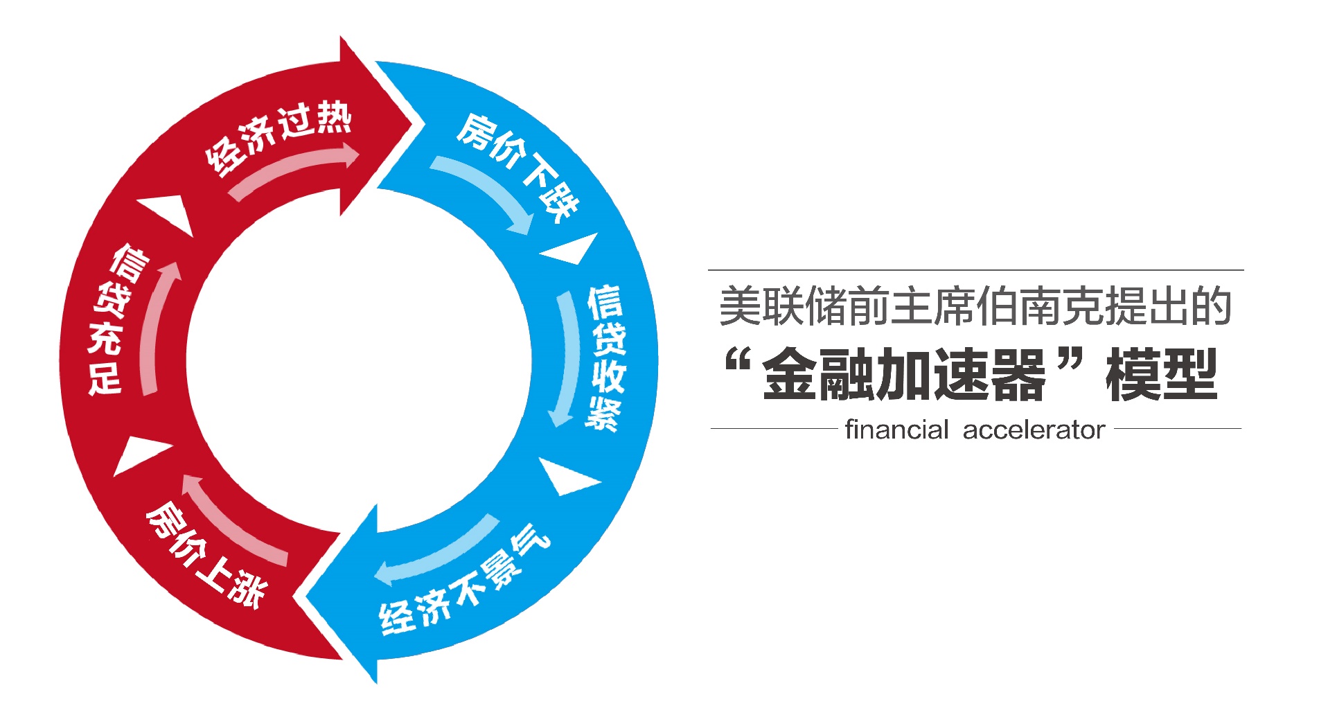 1996年,美聯(lián)儲前主席伯南克提出的“金融加速器”模型。具體來說,在經(jīng)濟繁榮、房價上漲時期,房價升高,銀行會據(jù)此增加放貸供給,造成經(jīng)濟過熱;而在經(jīng)濟衰退時,房價下跌,商業(yè)銀行就會減少放貸,加劇經(jīng)濟的蕭條。商業(yè)銀行抵押貸款的這種順周期特性,加劇了實體經(jīng)濟的波動。從90年代的日本經(jīng)濟危機到2008年次貸危機都印證了這一理論。