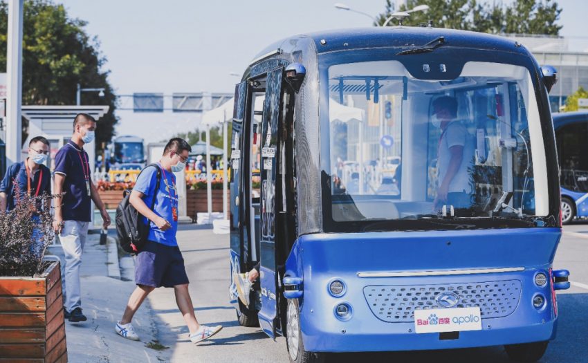 速途網9月5日訊(報道:喬志斌)百度自動駕駛明星產品“阿波龍”,趁著秋高氣爽來到了國家體育館,駛進了2020年中國國際服務貿易交易會。在國家體育館東側的無人駕駛汽車體驗區,阿波龍循環行駛,將一批又一批的乘客安全送達目的地。