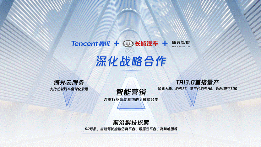 此次長城汽車、騰訊和仙豆智能的三方合作的深化,將加速長城汽車終端產品走向智能化,服務體系走向一體化、數字化,全面建設產業新階段的“數字化護城河”。