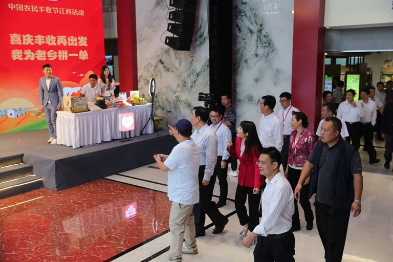 ▲9月22日,在江西豐收節現場,江西省委書記、省人大常委會主任劉奇一行參觀拼多多直播間。(攝影 孟綱)
