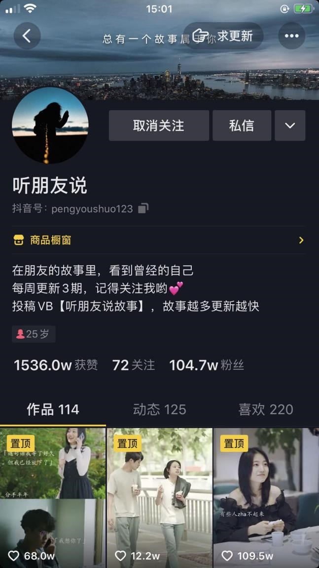 無獨有偶,速途短視頻旗下情感賬號“聽朋友說”,通過鄰家女生的視角講述感情故事,收集粉絲身邊的人和故事,以此尋求與粉絲達到共情。生活故事本身就具有戲劇性的一面,創意故事和帶有技巧的拍攝手法,加之達人鄰家女生甜美形象,使得“聽朋友說”備受用戶歡迎,在不到一個月的時間,2條短視頻內容播放量2000多萬,點贊超90萬,都成功占據抖音當日最熱視頻前十。