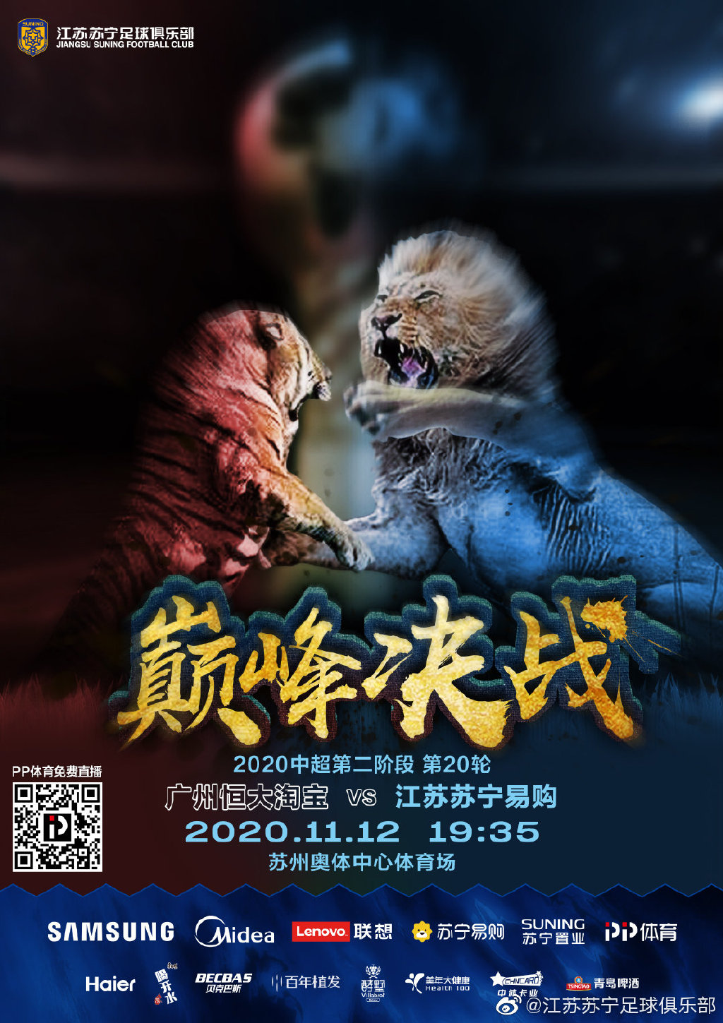 首回合江蘇蘇寧隊和廣州恒大隊戰成0:0平局,次回合將直接決定本賽季中超聯賽的冠軍歸屬。這場“天王山之戰”吸引了全國球迷的目光,但由于蘇州奧體中心看臺并非全部開放,因此本場比賽可謂是一票難求。