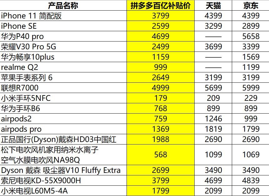 此外,正值每年一度的雙11時節。據多家媒體報道,拼多多百億補貼頻道上線了一批性價比極高的數碼家電產品,最低補貼千元,擊穿全網底價。