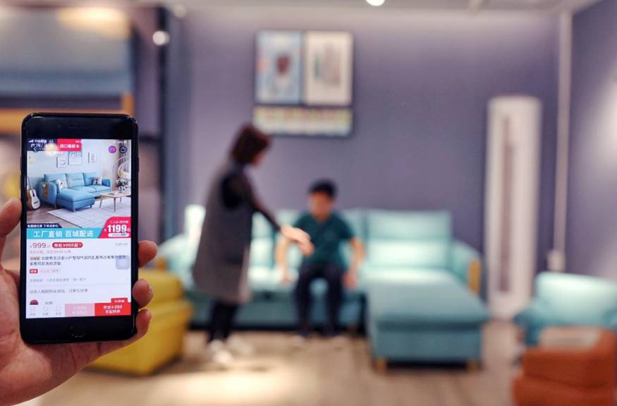▲“優居未來”客服人員正在拼多多店鋪直播推介一款高性價比的沙發組合。11月16日,江西省贛州市南康區人民政府與拼多多簽定戰略合作框架協議。拼多多副總裁陳秋表示,“未來五年,平臺將聯合南康優秀家具制造企業,通過‘反向定制、品銷合一’的模式,幫助南康孵化20個十億級家具品牌。”(攝影:順子)