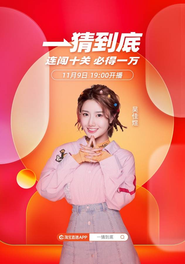在拍攝短視頻的同時,吳佳煜有意識地用更多元的商業模式證明自己。今年天貓雙11期間,吳佳煜在淘寶直播APP,以互動游戲“一猜到底”首席猜價官的新身份出現在消費者面前。