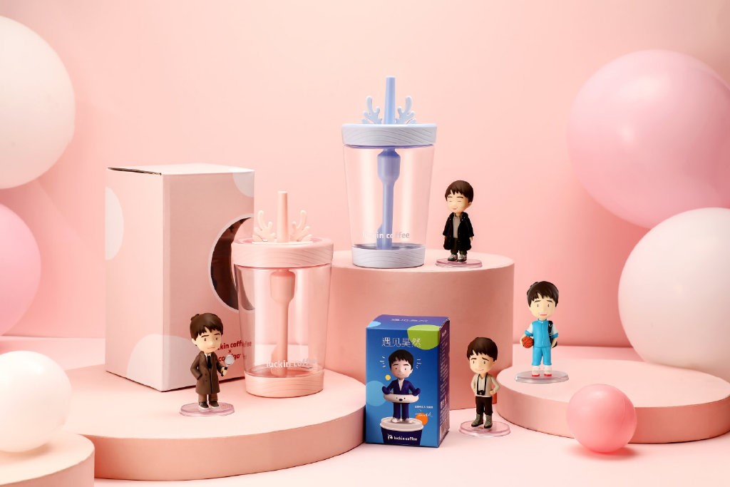 除了IP文創公司紛紛入局外,不少來自其他行業的玩家,也試圖通過盲盒的形式來進行“破圈”營銷,在滿足用戶收集樂趣的基礎之上,這些企業還通過與明星聯名的方式,實現顯示偶像與IP文創的深入聯動。例如去年咖啡品牌瑞幸在發布“小鹿茶”品牌同期宣布聘請劉昊然出任品牌代言人,同時推出購杯購卡即可收集偶像盲盒的活動,一時間收獲了網絡的關注。