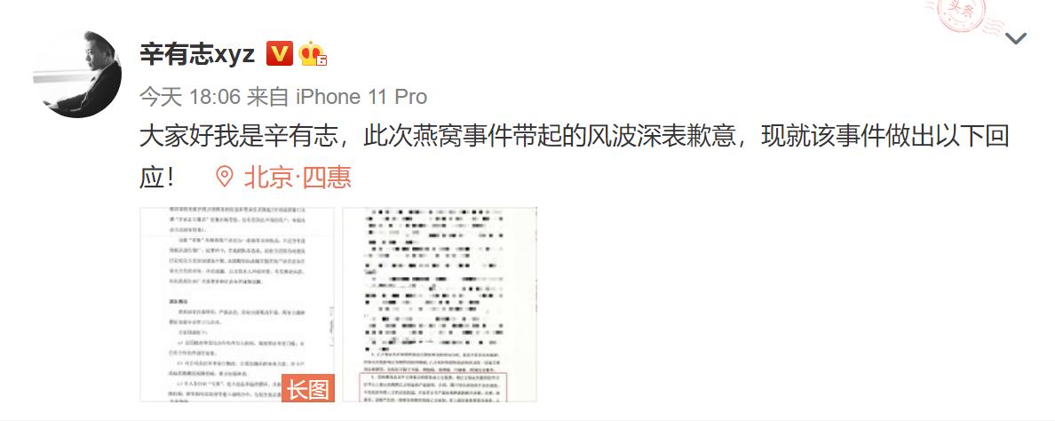 速途網11月27日訊(報道: 王璇) 針對所售燕窩被檢測為糖水一事,快手主播辛巴(本名辛有志)今晚在其微博上發出“辛有志寫給廣大網友的一封信”,信中承認在直播間推廣銷售的“茗摯”燕窩存在夸大宣傳,實為一款燕窩風味飲品,并對“燕窩事件”帶起的風波深表歉意?!辈⒈硎?,對于售出的燕窩,將全部召回、承擔退一賠三責任。