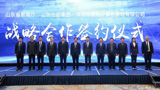 (山東省教育廳、山東出版集團、騰訊公司三方簽約合影)