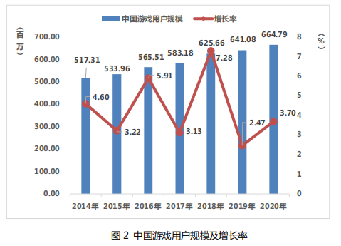 2020 年,中國游戲用戶數量保持穩定增長,用戶規模達 6.65 億人,同比增長 3.7%。
