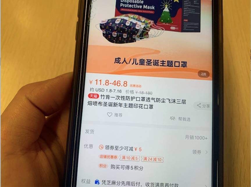 “今年平臺出口的國產(chǎn)圣誕用品比往年更加豐富,商品數(shù)同比增長50%,其中疫情相關(guān)的圣誕商品如圣誕款口罩賣得很好,銷往90多個海外國家和地區(qū),兒童款銷量占到了近5成。”據(jù)天貓?zhí)詫毢M饧揖影儇?span id="pvt9hfz" class="wpcom_keyword_link">行業(yè)負責人舒衛(wèi)祥介紹,澳大利亞、美國、加拿大消費者買圣誕款口罩較多,美國消費者還熱衷買圣誕服飾,新加坡、日本消費者偏愛圣誕禮盒,馬來喜歡圣誕襪。