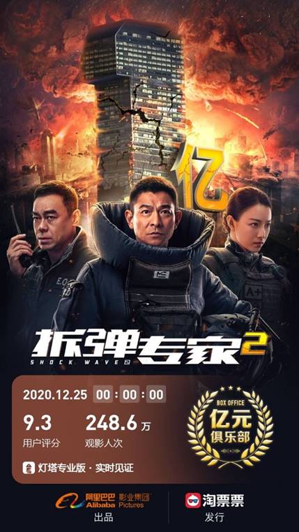 速途網12月25日消息(報道:李楠)昨日,由阿里影業出品、淘票票發行的影片《拆彈專家2》累計票房破億,創下賀歲檔首日票房紀錄,并得到淘票票9.3分、豆瓣8.1分的超高口碑。《拆彈專家2》成績離不開影片過硬的內容品質,同時也得益于以燈塔“沖擊播”為王牌產品的阿里影業新營銷矩陣的助力。