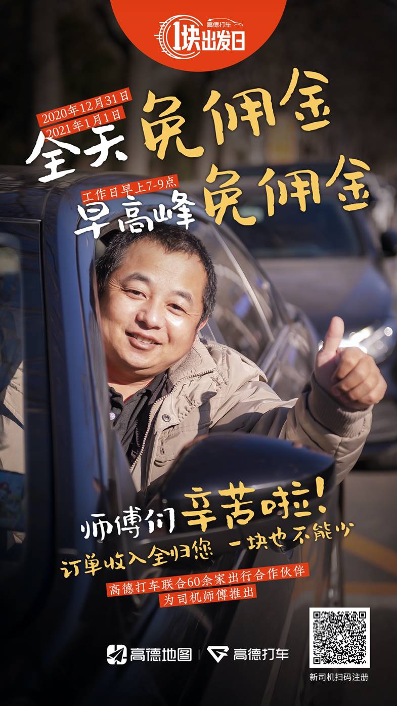 為了鼓勵司機師傅出車,多勞多得,努力讓乘客有車可打,高德打車聯合60余家出行合作伙伴再次推出“全天免傭金”活動,2020年12月31日和2021年1月1日兩天,為司機師傅全天免傭。高德打車還將推出全年最豐厚的司機獎勵,全天沖單獎、高峰時段獎、地理圍欄獎等多重獎勵并行,獎勵力度比日常翻倍。高德打車預測,跨年兩天,司機最高收入有望達到3000元。