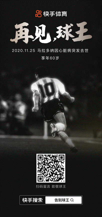 11月底球王馬拉多納于家中突發(fā)心臟驟停去世,突發(fā)事件引起全網(wǎng)轟動??焓煮w育第一時間搭建專題頁,聯(lián)動央視網(wǎng)體育進行球王經(jīng)典瞬間不間斷回顧直播,為全網(wǎng)球迷提供了最直接的可以表達和致敬悼念的場景。