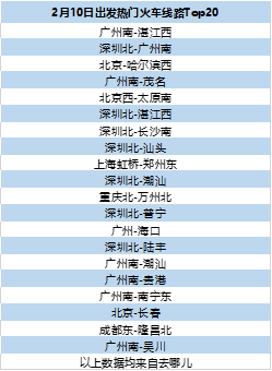 速途網1月13日消息(報道:李楠)今日,除夕(2月11日)出發火車票正式開售。去哪兒數據顯示,2月10日出發的熱門線路始發站多在廣州和深圳,且省內短途線路居多。