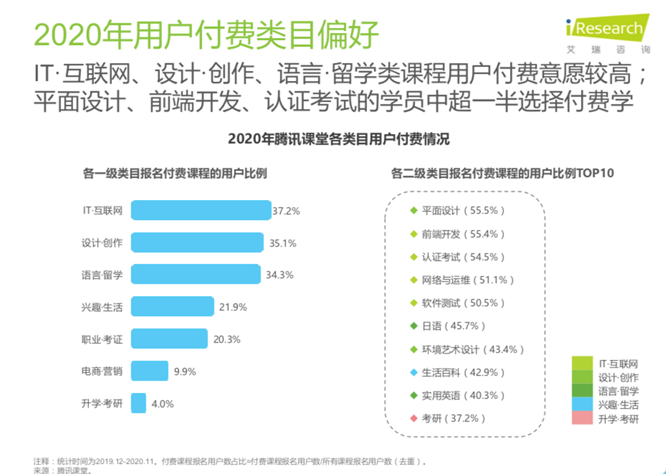 IT互聯網類課程用戶付費意愿最高,直播帶貨、配音等“網紅”課程增幅顯著