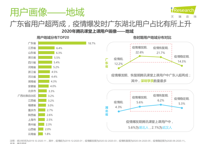 此外,報告還分別從性別及年齡、學歷、地域等多維度刻畫了騰訊課堂的用戶畫像,這對幫助行業機構了解在線用戶將起到重要參考作用。