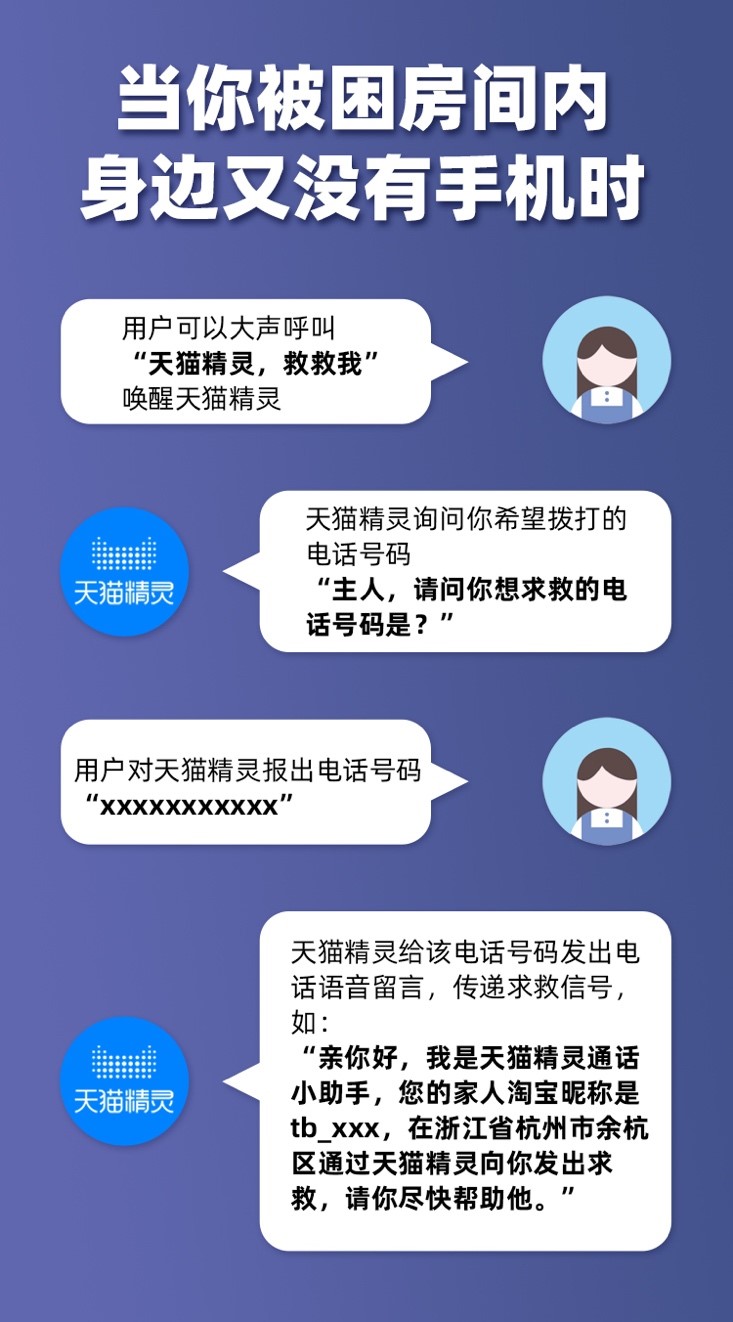 2月19日,天貓精靈回應(yīng)稱,正在緊急開發(fā)呼救功能,下周將全面上線。用戶大聲呼喊“天貓精靈,救救我”,在報出希望撥打的手機(jī)號碼后,天貓精靈會撥通緊急聯(lián)絡(luò)熱線。同時,考慮到更多人可能遇到的不同情況,天貓精靈團(tuán)隊還在同步開發(fā)“緊急聯(lián)絡(luò)人”、“110報警”以及“暗語報警”等功能,也會在稍后上線。
