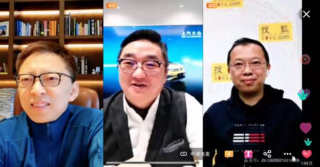 速途網(wǎng)3月13日消息(報(bào)道:李楠)昨天下午15時(shí),《Boss1+1》第十七期準(zhǔn)時(shí)開(kāi)播,搜狐公司董事局主席兼CEO張朝陽(yáng)、上汽大眾汽車(chē)有限公司銷(xiāo)售與市場(chǎng)執(zhí)行副總經(jīng)理賈鳴鏑,與搜狐網(wǎng)副總編輯晏成一起,分別從北京、上海兩地登陸直播間,三屏連線,以“ID‘亮劍’,比賽才剛剛開(kāi)始”為主題,暢聊未來(lái)汽車(chē)生活有多酷。