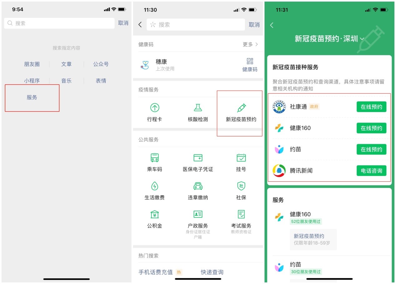 除服務(wù)導(dǎo)航頁外,用戶也能通過微信發(fā)現(xiàn)頁搜一搜搜索“新冠疫苗預(yù)約”進(jìn)入新冠疫苗接種預(yù)約服務(wù)頁面。
