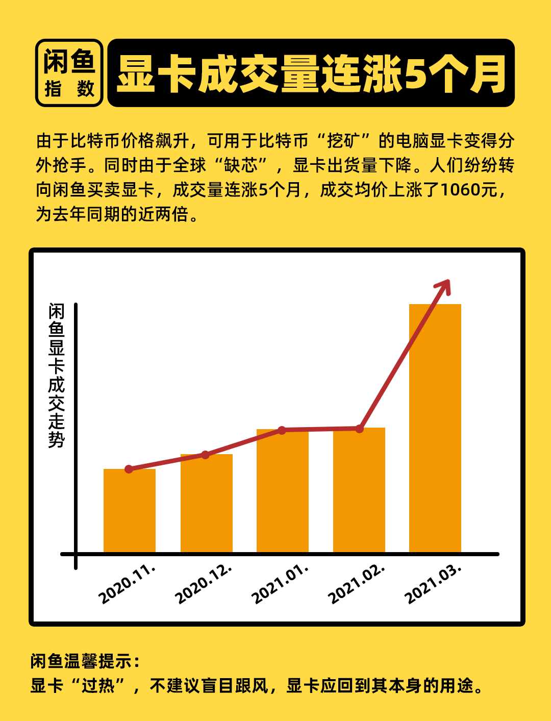 專家表示,當(dāng)前閑魚上的“顯卡熱”源于比特幣價格的持續(xù)上漲。