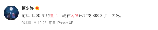 更有不少閑魚用戶在“懊悔”:自己掛在閑魚的顯卡賣早了。