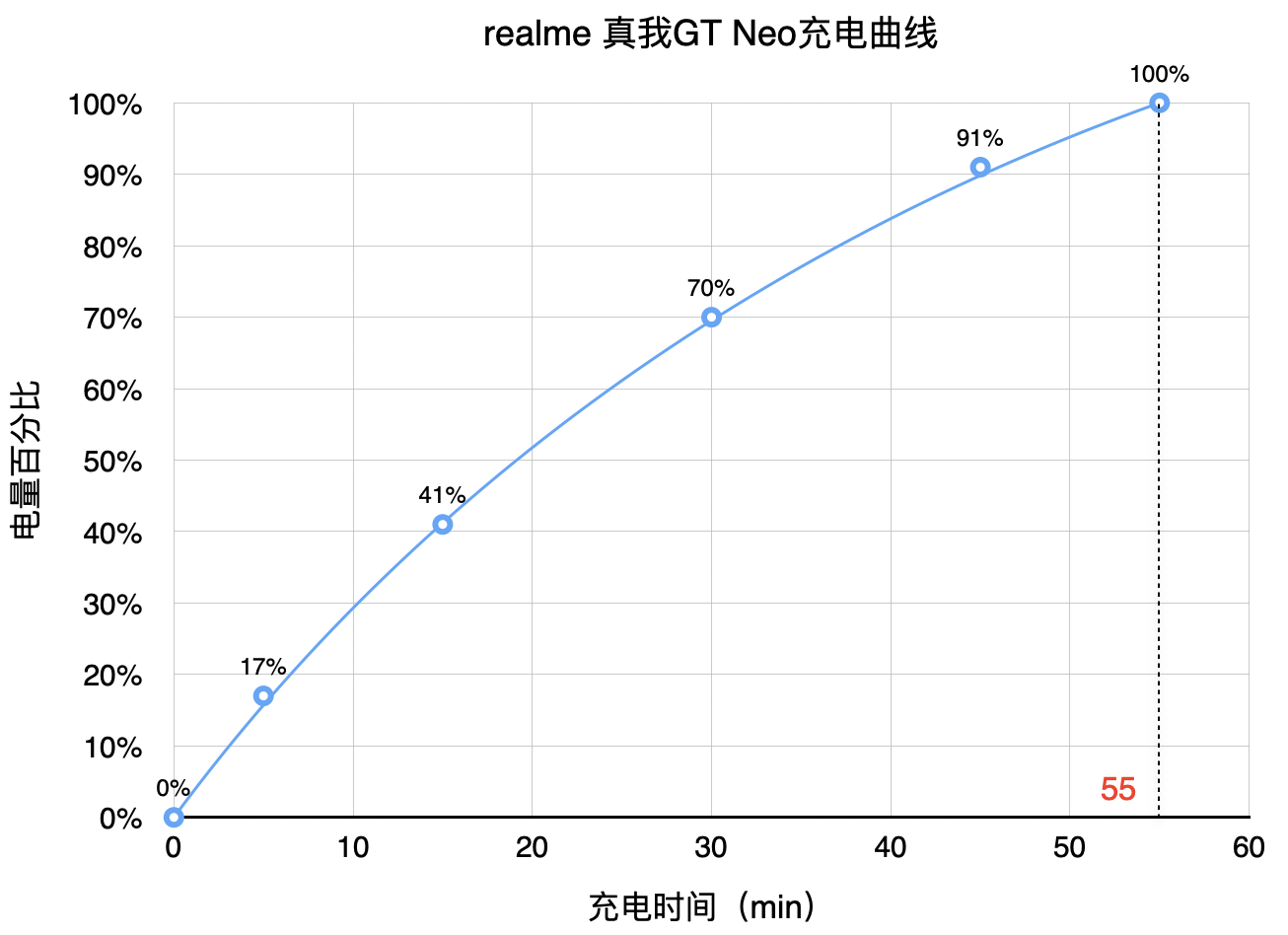 實(shí)測(cè)使用原裝充電器材為realme 真我GT Neo充電,半小時(shí)可為手機(jī)充電70%,0-100%共耗時(shí)55分鐘。可以說(shuō),realme 真我GT Neo是realme面向“潮玩科技”的又一次致敬。一方面,通過(guò)個(gè)性鮮明的設(shè)計(jì),滿足新時(shí)代青年用戶更為多元化的需求。另一方面,天璣1200出彩的性能表現(xiàn),也使其成為性能旗艦中的“性價(jià)比”強(qiáng)者,同樣價(jià)格里性能“敢越級(jí)”的急先鋒。