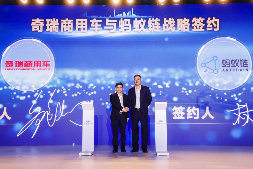 速途網5月6日消息(報道:李楠)今日,螞蟻鏈與奇瑞商用車在成都簽署戰略合作協議,雙方將共同推進區塊鏈等技術在新能源商用車領域的應用,共建全新的城市配送物流信任體系,助推產業數字化升級。