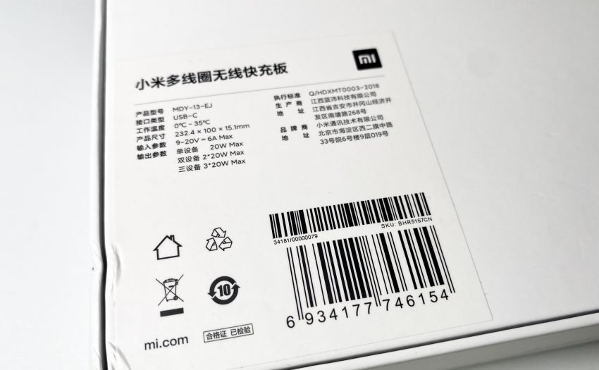根據(jù)包裝盒上的參數(shù)可見,小米多線圈無線快充板最多可以支持3臺(tái)設(shè)備同時(shí)最大20W的無線充電。