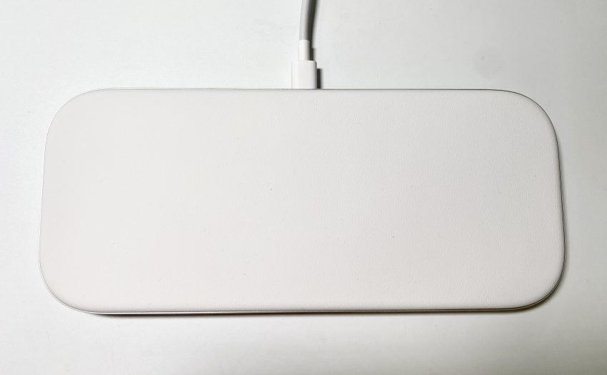 小米多線圈無線快充板的表面采用了親膚的硅膠材質(zhì),觸感十分柔和,上方的仿皮質(zhì)紋理,在提升質(zhì)感的同時(shí),也提升了手機(jī)放置于其上時(shí)的摩擦力。而承載整個(gè)充電板的是材質(zhì)為CNC一體成型的鋁合金邊框,與面板的銜接處還切割出了一條亮線,進(jìn)一步提升了充電板的精致感。