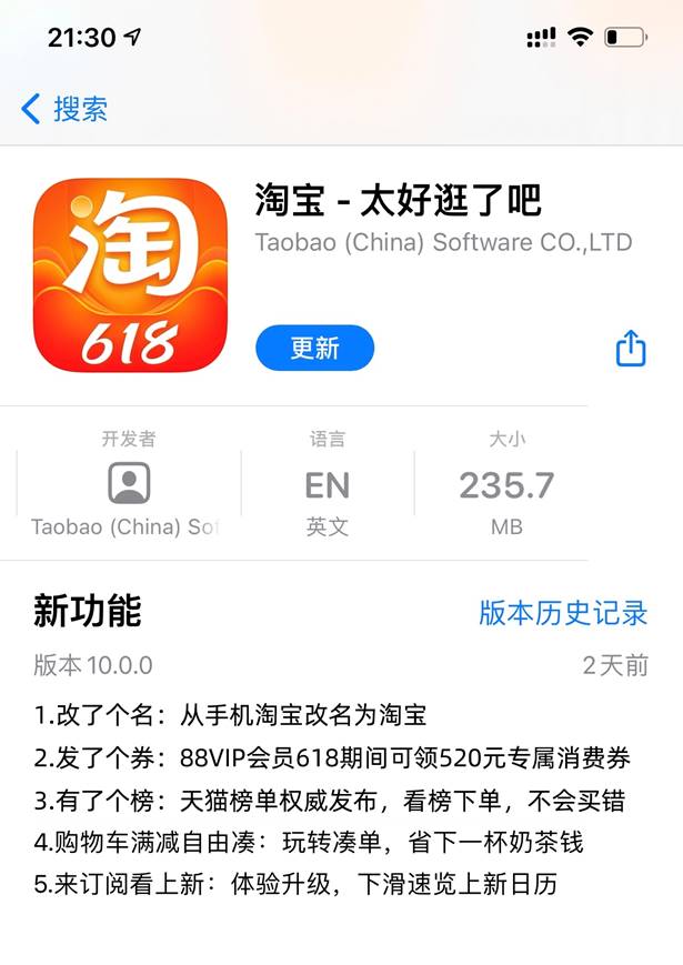 圖:淘寶APP從“手機淘寶”改名為“淘寶”