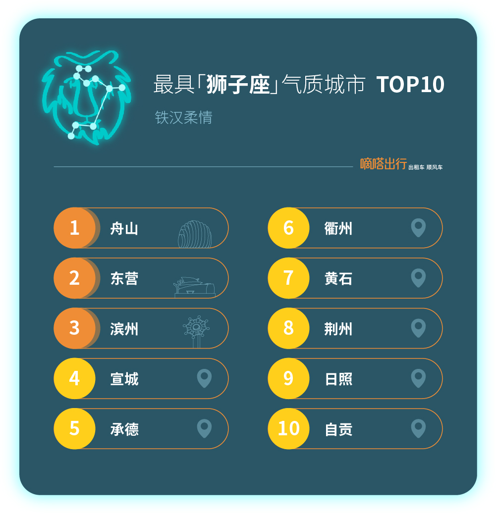 最具“獅子座”氣質城市:舟山?? 三四線城市順風出行更愛訂單備注