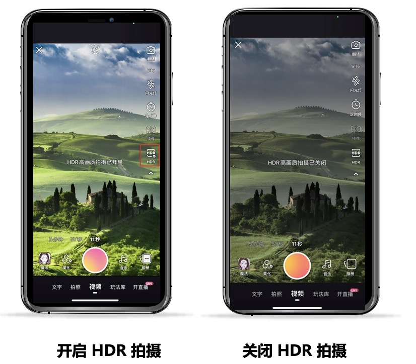 據了解,用戶使用快手進行HDR視頻創作的方式并不復雜,只需在拍攝界面右方下拉菜單中找到HDR按鈕,點擊開啟,拍攝完成即可直接對HDR視頻進行編輯、上傳和觀看,無需在不同App間切換。HDR拍攝依賴手機硬件支持,目前快手針對具備HDR拍攝能力的手機提供該能力。