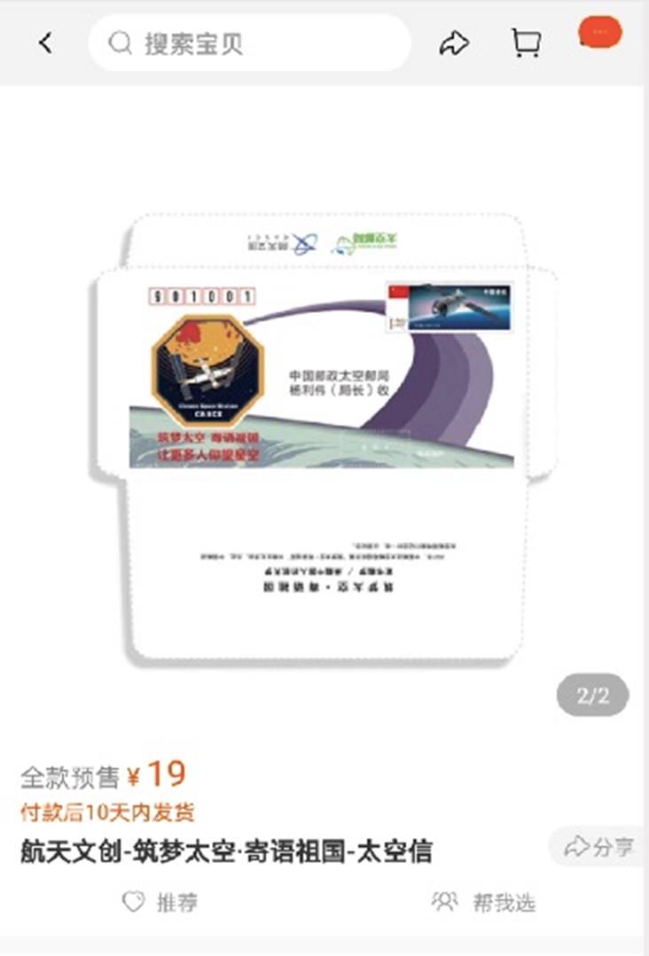 “中國航天文創”淘寶店首次上架“太空信”套裝