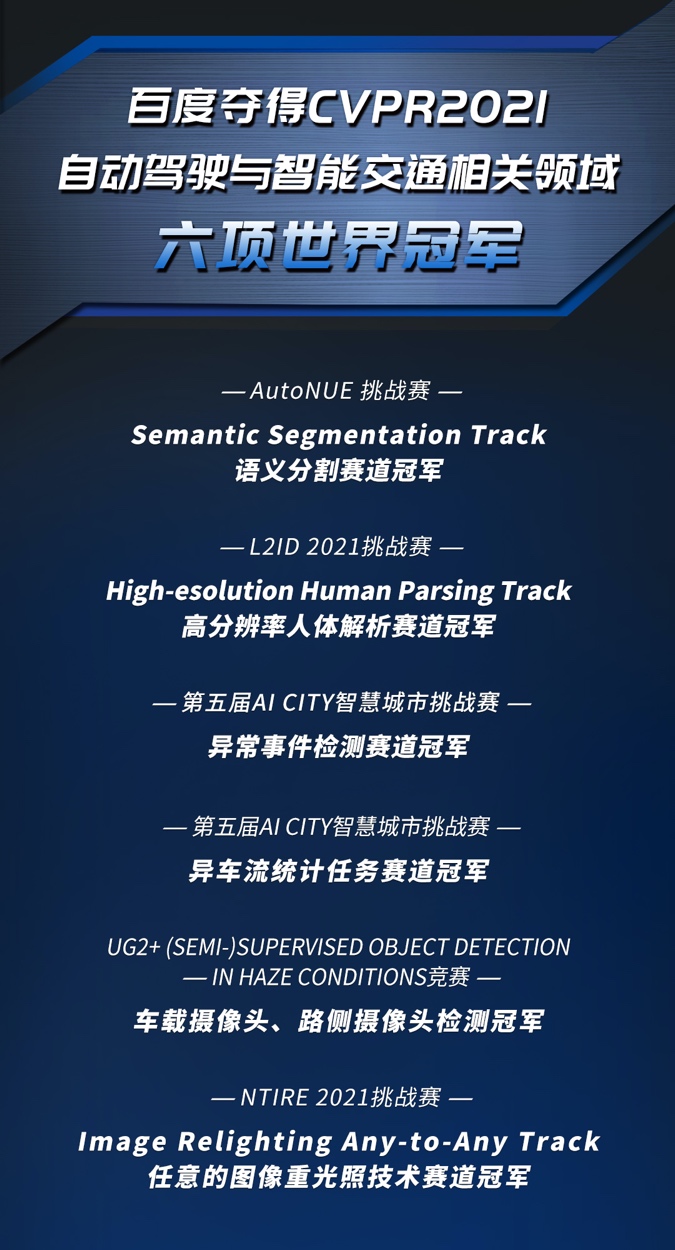 速途網6月29日訊(報道:喬志斌)CVPR 2021 AI國際盛會上,中國人工智能“頭雁”百度勇奪十項世界冠軍。其中,六項冠軍成果可加速自動駕駛、智能交通全場景落地和應用。深厚的AI技術積累,成為百度推動中國自動駕駛、智能交通發展的最強技術底氣。