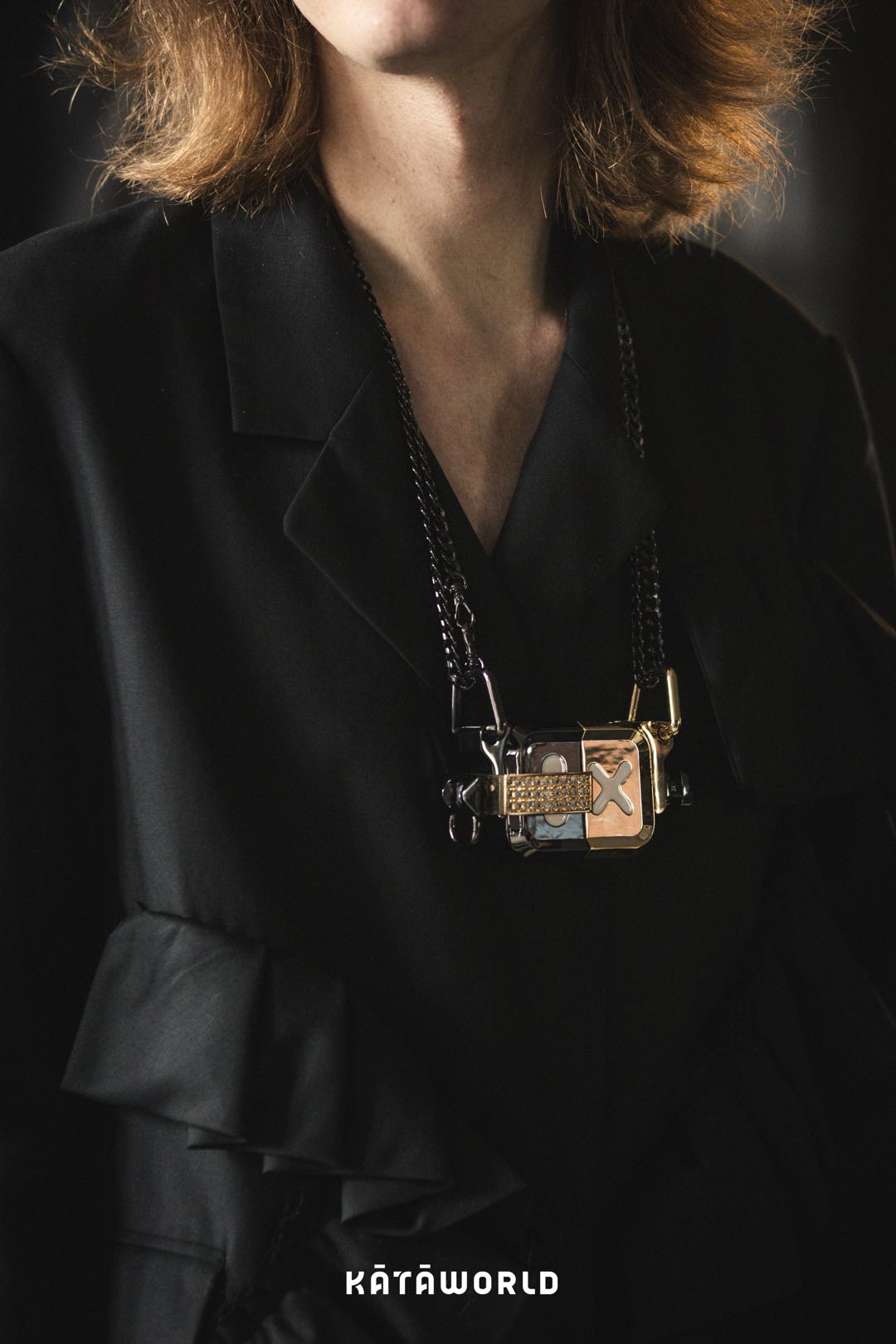 KataWorld定位于“Z世代”的可穿戴藝術(shù)潮玩,產(chǎn)品主體由擁有專利設計的兩個標準化模塊構(gòu)成,左右兩半可隨意組合,所有組件如機器人配件一般均可任意拆卸。其它配件,如項鏈鏈條、胸針扣、鑰匙圈等用戶均可自由購買,按喜好自行設計、自由拼接DIY。