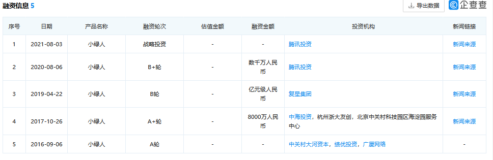 值得注意的是,早在去年8月,小綠人便已獲得過“騰訊”數千萬人民幣的B+輪融資。