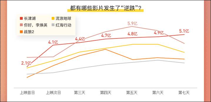 在其中,《長(zhǎng)津湖》無疑在其中扮演了引領(lǐng)者的角色。該片自9月30日開畫取得2.05億票房后,在次日斬獲4.10億票房,不僅打破了由《我和我的祖國(guó)》創(chuàng)造的國(guó)慶檔單日票房3.88億的紀(jì)錄,而且相較前日“逆跌”幅度達(dá)到100%,并從此開啟了連續(xù)5天的“逆跌”之路。報(bào)告認(rèn)為,連續(xù)的“逆跌”是爆款形成的標(biāo)志,該現(xiàn)象多出現(xiàn)在年度頭部檔期,優(yōu)質(zhì)影片能夠不斷帶動(dòng)更多新用戶走進(jìn)影院。